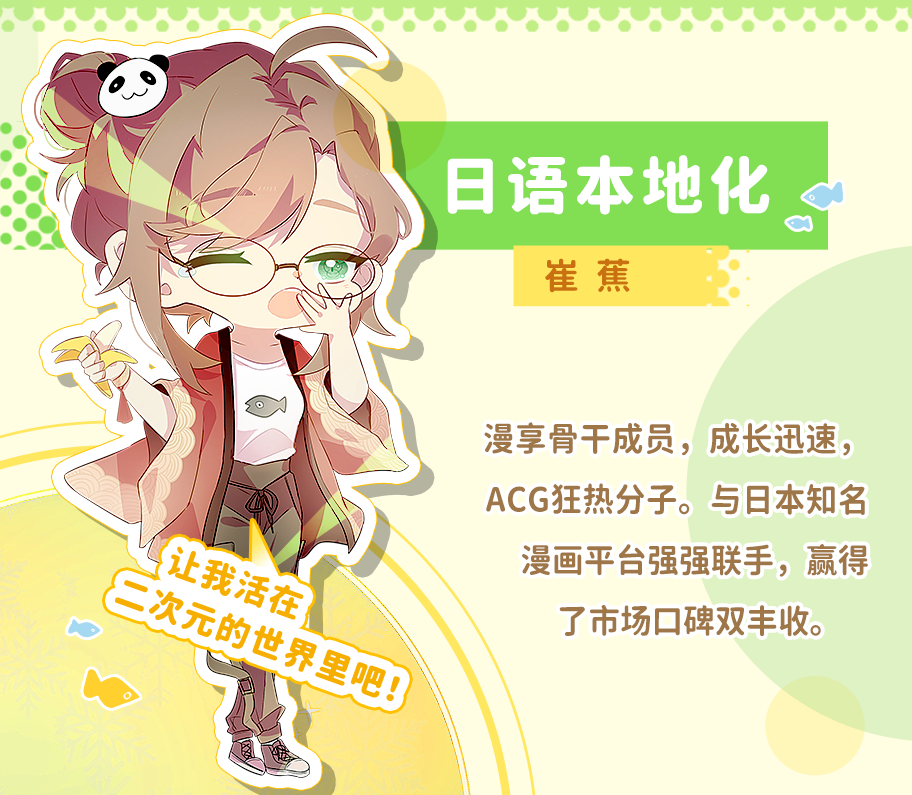 香蕉漫画于2017年成立于北京,现已在香港、成都、沈阳三地设有子公司,业务涉及漫画本地化、漫画版权代理、漫画再制、原创漫画创作等多个领域。 我们的理念:择一事终一生,香蕉漫画希望做漫画行业的匠人,希望为每个用户提供极致的服务和作品。